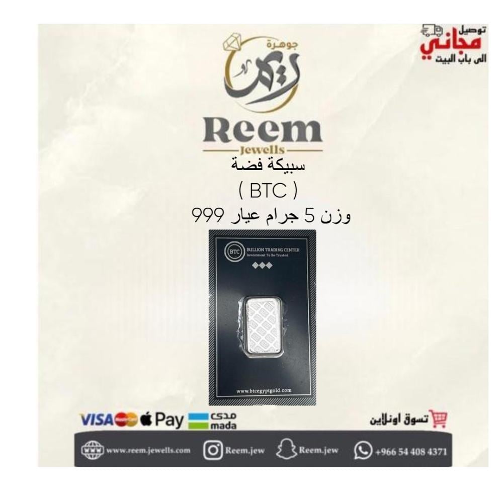 سبيكة فضة ( BTC ) وزن 5 جرام عيار 999